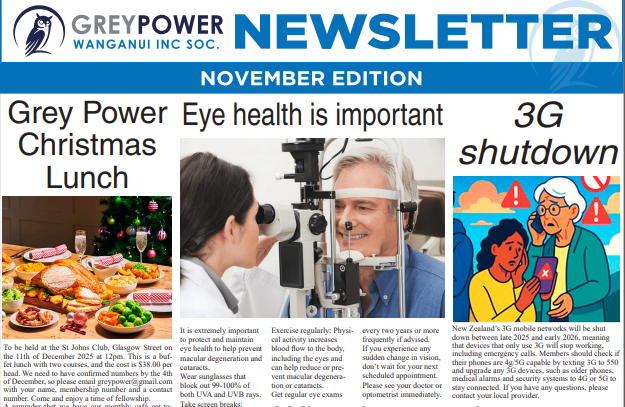 Membership of Grey Power Wanganui is open to any person who is interested in the concerns and/or wellbeing of the elderly. We currently have over 800 members who come from Wanganui and districts, from Taihape to Waverley.